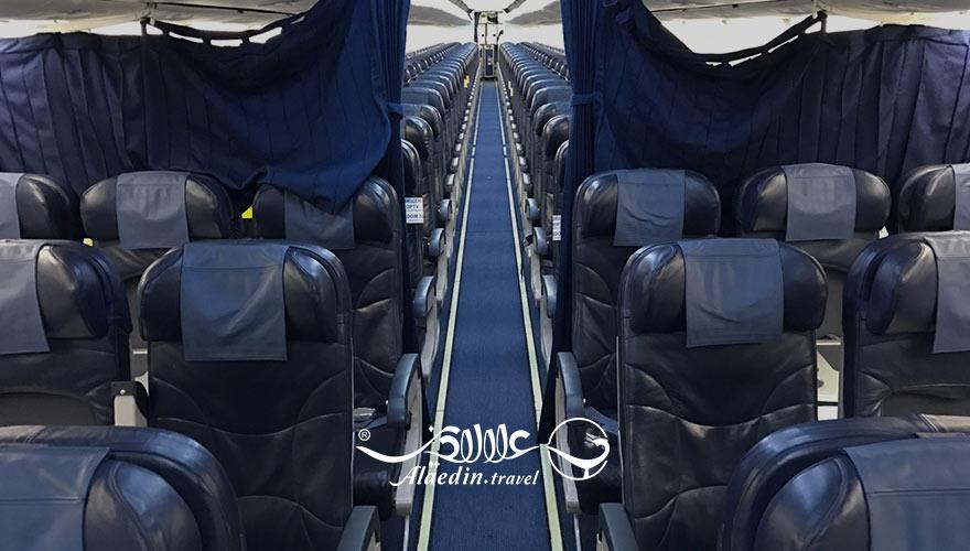 کلاس اکونومی: با رزرو کلاس پروازی اکونومی، با توجه به میزان زمان مبدا تا مقصد، مسافران میتوانند نوشیدنی، خوراکی و یا وعده غذایی کامل به صورت رایگان دریافت کنند. در کلاس اقتصادی هر مسافر، اجازه دارد یک بسته به وزن 7 کیلوگرم همراه داشته باشه و یک بسته به وزن 23 کیلوگرم در قسمت بار هواپیما تحویل دهد. همچنین مسافران، میتوانند از صندلیهای ساده اما استاندارد استفاده کنند و سفری آرام را در پیش داشته باشند.