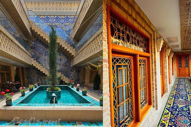 هتل در محلهای تاریخی و با دسترسی آسان به جاذبههای گردشگری شیراز واقع شده است. چشمانداز اتاقها شامل حرم، خیابان، محوطه هتل و کوچههای اطراف است که فضایی دلنشین و آرام برای استراحت مهمانان فراهم میکند.